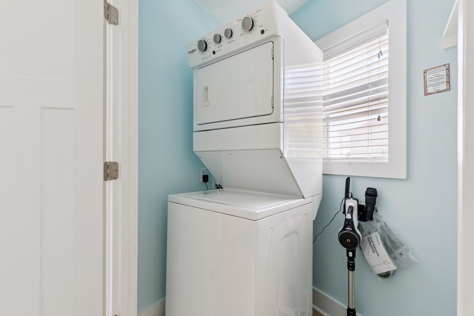 We also have all the necessities--dishwasher, pots, pans, silverware, blender, towels, linens, dishwashing detergent, laundry detergent, cleaning supplies, spices, charcoal grill, etc.