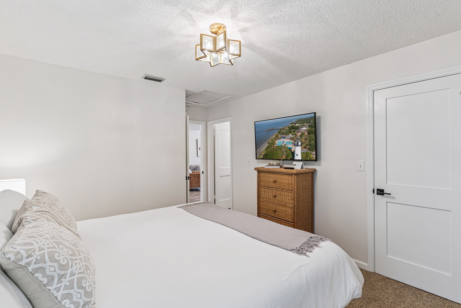 Bedroom 1: The primary suite features a luxurious king-size bed, ample closet space and TV (sleeps 2)