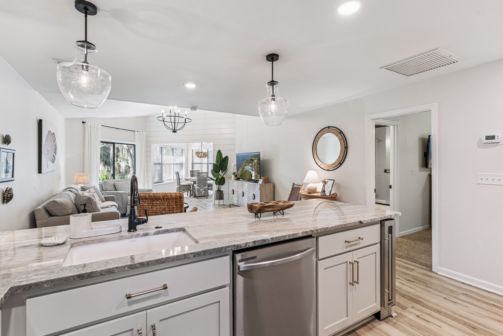 Step inside to find a spacious and inviting common area, thoughtfully adorned with coastal décor, providing everything you and your family need for a relaxing beach getaway.
