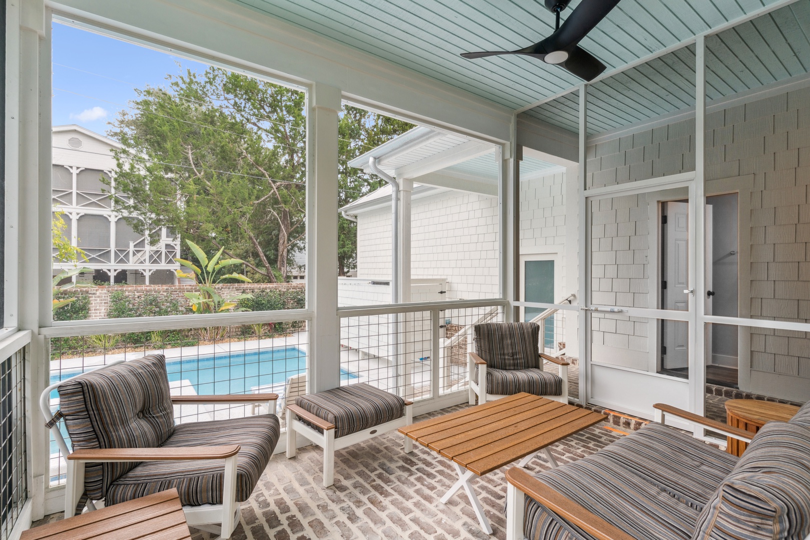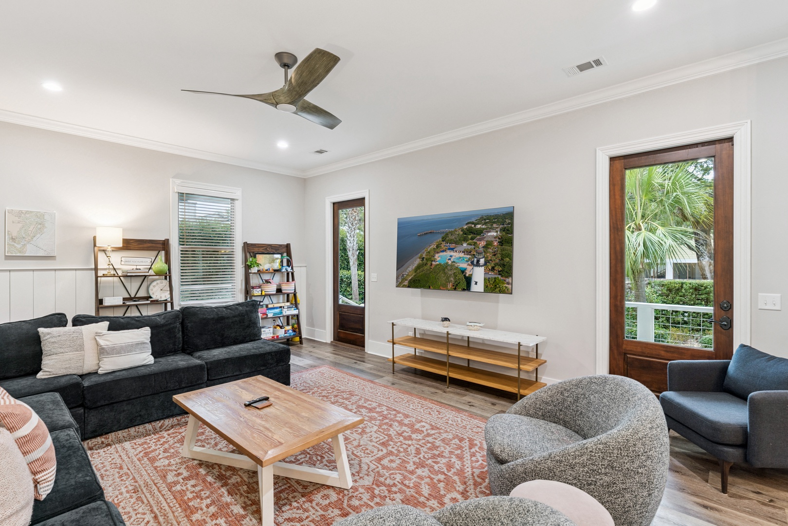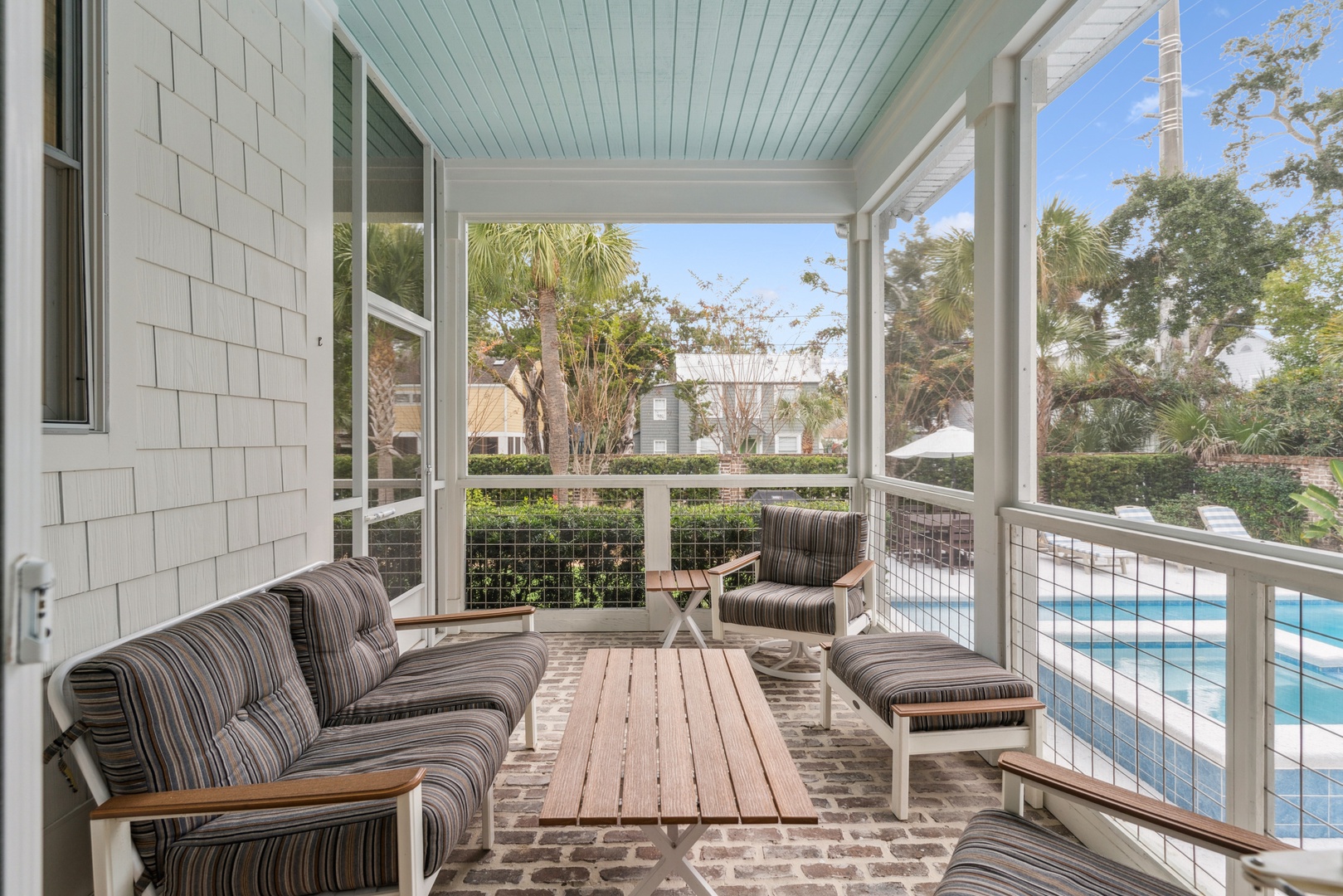 On the first floor you will find a large living area with plenty of seating and a large screen television. The dining area is situated with seating for ten and eating bar for four. The kitchen has all stainless appliances including wall oven, microwave, gas stove top, large refrigerator and an under the counter ice maker. From the kitchen there is a screened porch with seating for six overlooking the tropical oasis pool area.