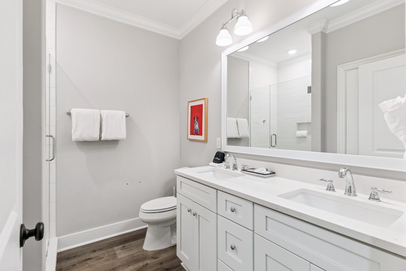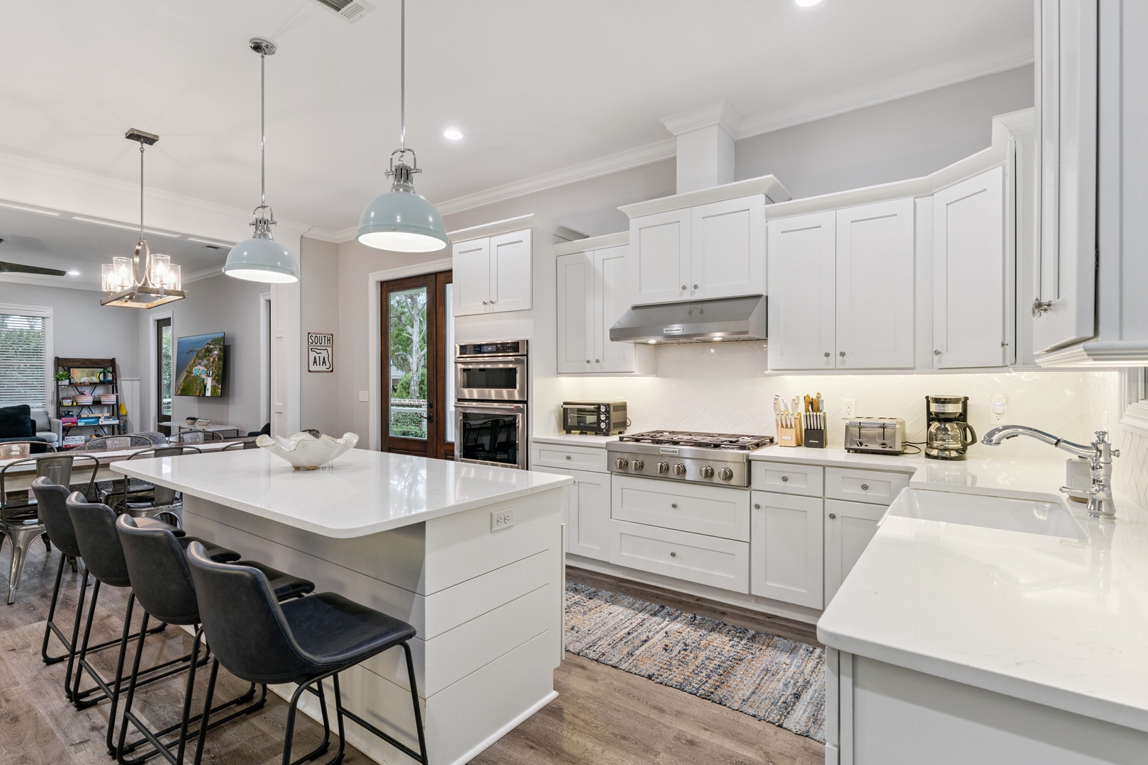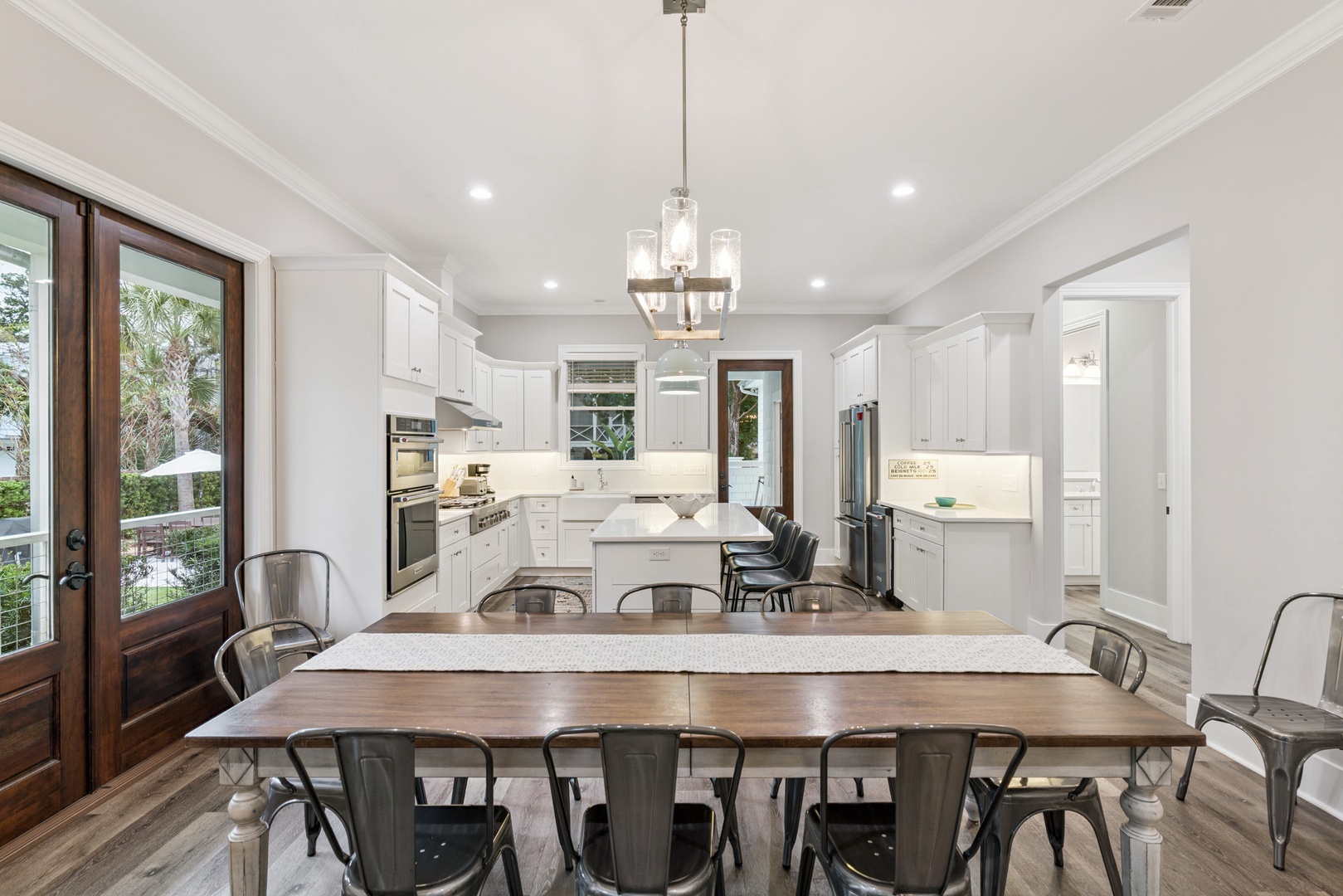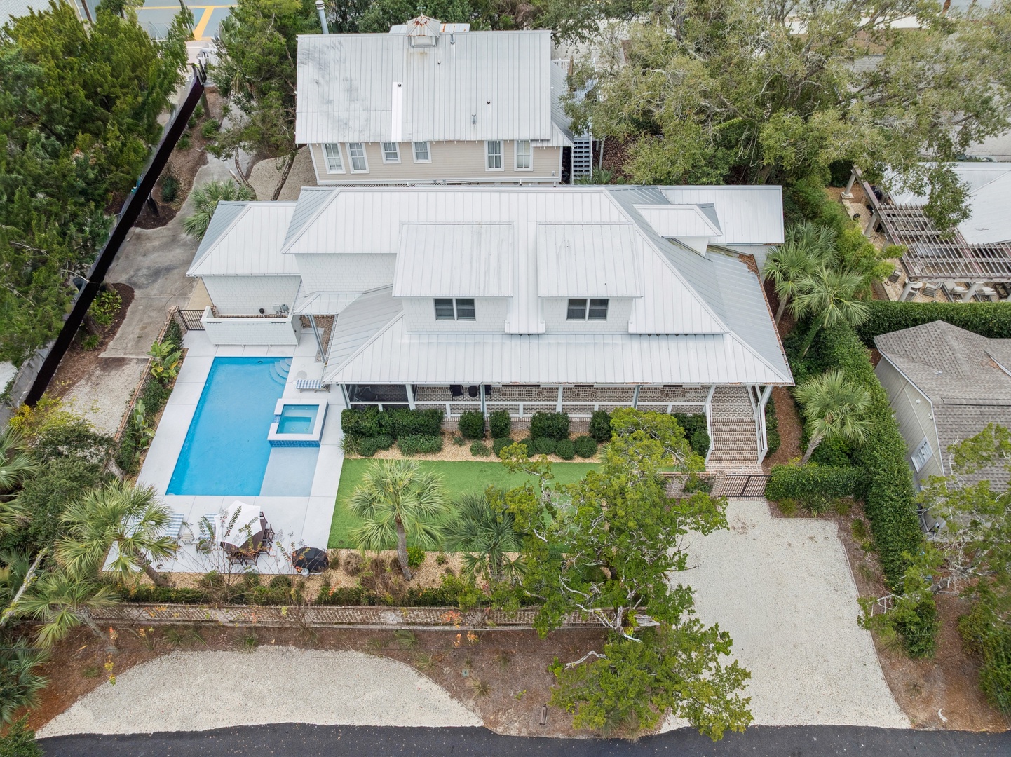 On the first floor you will find a large living area with plenty of seating and a large screen television. The dining area is situated with seating for ten and eating bar for four. The kitchen has all stainless appliances including wall oven, microwave, gas stove top, large refrigerator and an under the counter ice maker. From the kitchen there is a screened porch with seating for six overlooking the tropical oasis pool area.