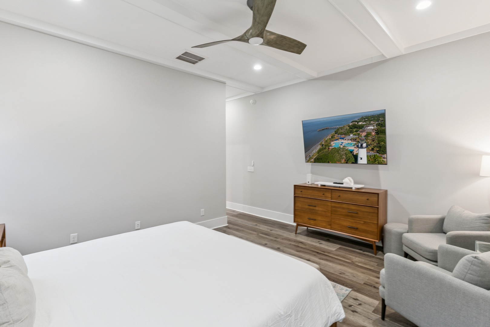 Bedroom 1 – Main floor, Primary, King, TV (sleeps 2)