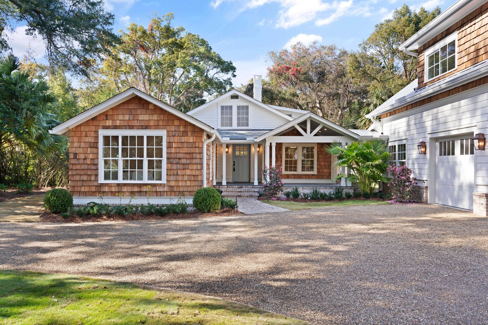 Two bedrooms are located in the separate garage suite with a full bathroom and sitting area, which is ideal for visitors or extended family. Nestled among majestic oaks and situated across from the marsh, Red Bird Place Cottage provides refreshing breezes and serene views. Seize the opportunity to own a piece of the island's rich history, now thoughtfully updated for contemporary living.