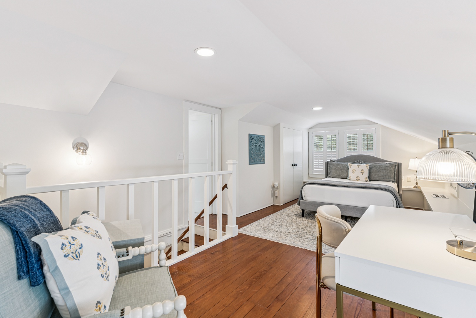 Upstairs, is an additional bedroom and bath.