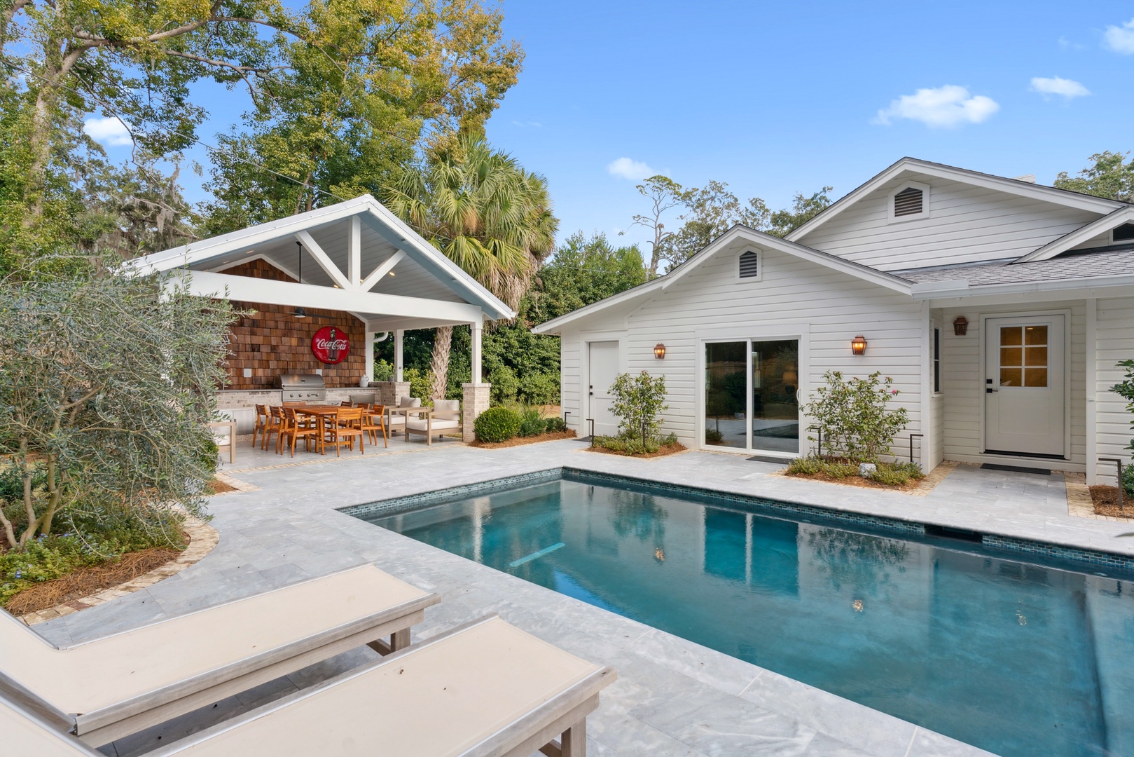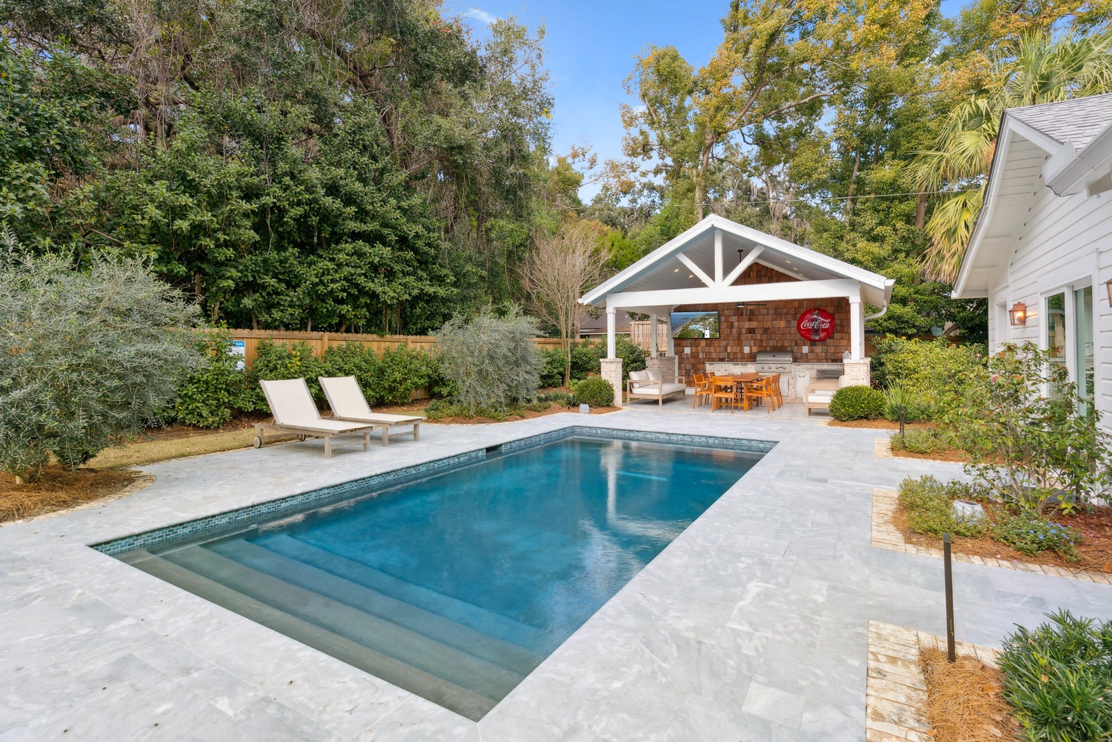 Experience the perfect blend of historic charm and modern luxury at Red Bird Place Cottage, a beautifully renovated 1935 gem on St. Simons Island. Originally crafted by Aunt Birdy, the Jekyll Island Club's educator during its golden era, this expanded residence now offers 5 bedrooms and 5 bathrooms. You can enjoy the outdoor living oasis even in the cooler months with an option to heat the pool.