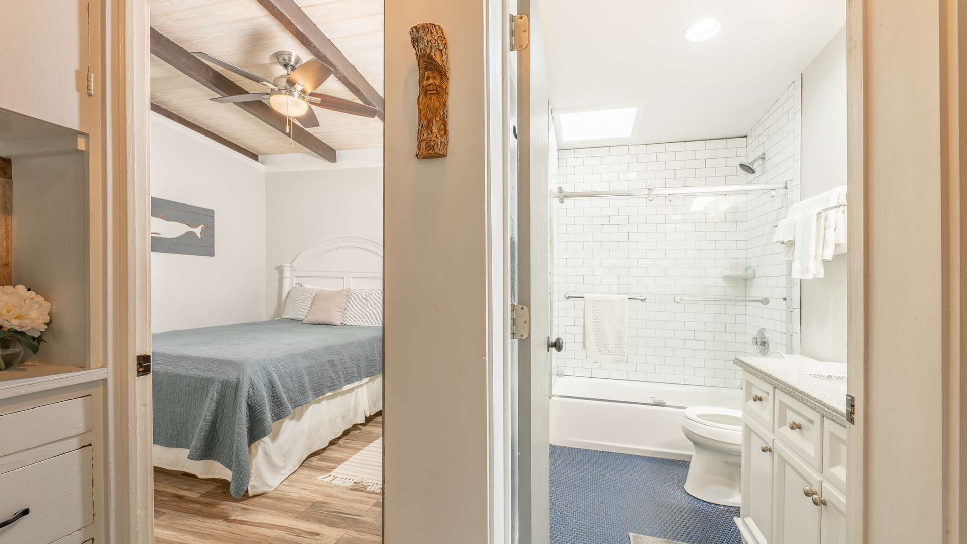 Bedroom 1 – King, single trundle under bed, TV, Ensuite Bathroom (sleeps 3)