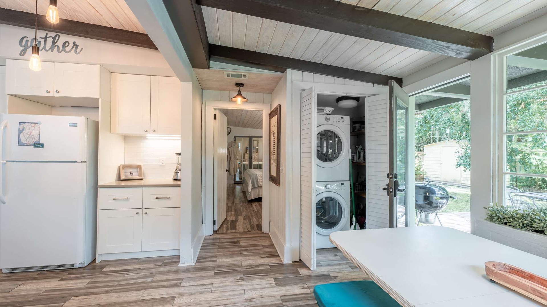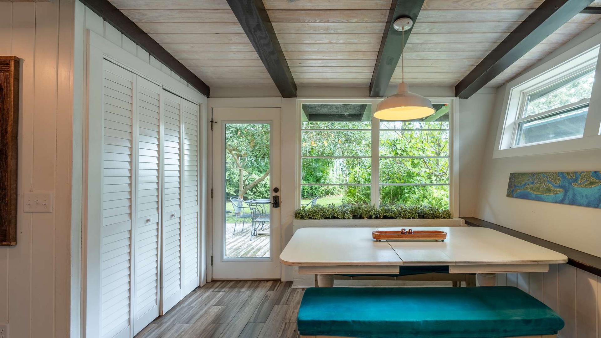 Welcome to The Shipwright’s Bungalow, a timeless coastal retreat on beautiful Saint Simons Island. Built in 1947 by a master shipbuilder, this mid-century bungalow was crafted with the same precision and care once reserved for wooden vessels. Though lovingly updated for modern comfort, the home still carries the spirit of its original craftsmanship — from the exposed beams to the warm, welcoming layout.
